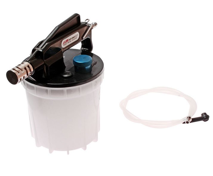 Устройство для откачки тормозной жидкости пневматическое JTC. Применение данного приспособления позволяет снизить затраты, ускорить работы, а также экономить рабочую силу. Универсальность: применяется для обычных тормозных систем и тормозных систем с АБС. Чистота рабочего места: конструкция не допускает разлива откачиваемой жидкости. Бесшумная работа: встроенное устройство обеспечивает бесшумную работу механизма. Приемный патрубок выполнен из силикона.